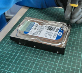 ソフトウェアを使ってデータ入力を行い、ハードウェアのHDDを分解する。