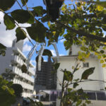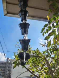 オンザライズの1階玄関の植え込みにある鎖樋(くさりとい)には、